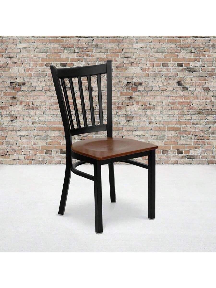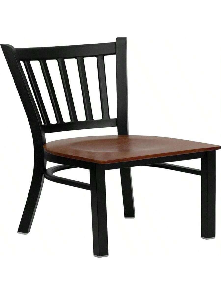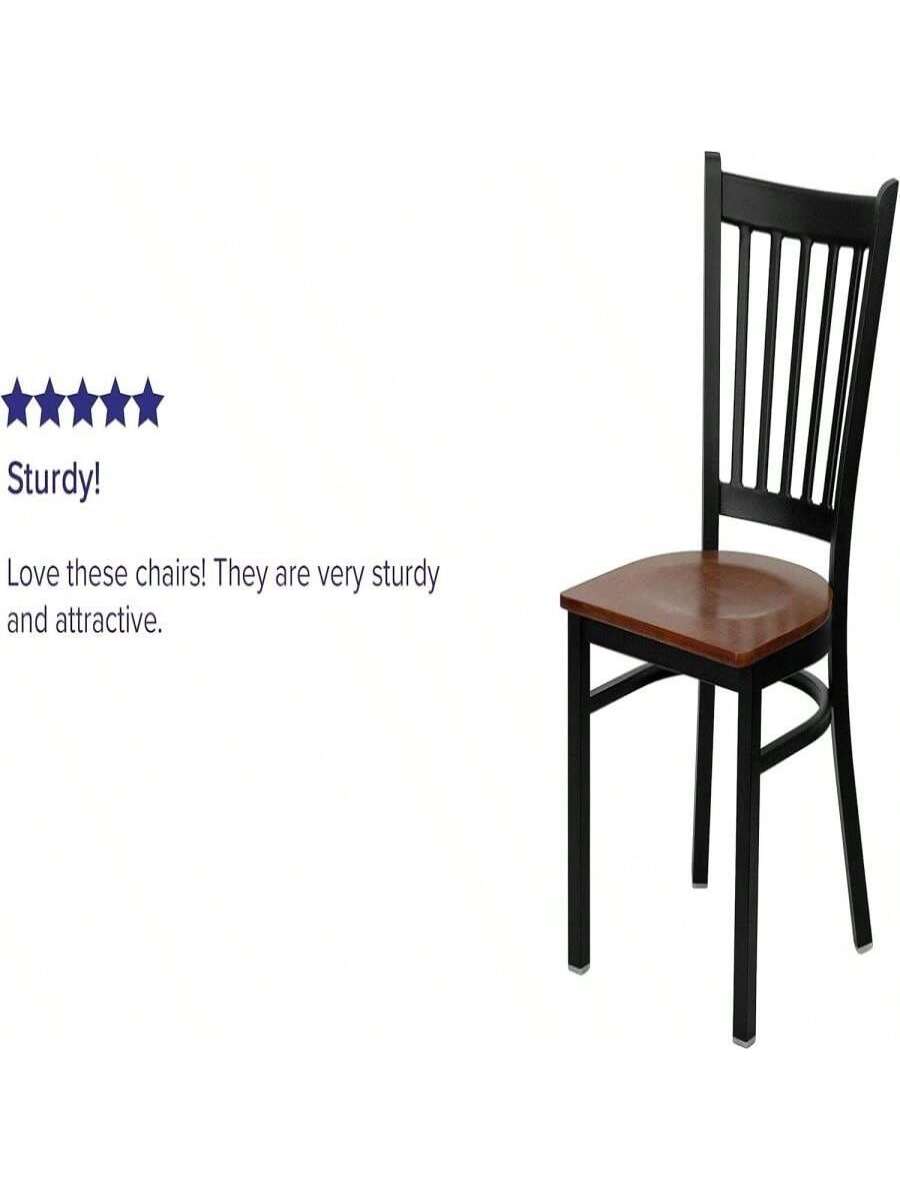 Flash Furniture Hercules Series Vertical Back Metal Restaurant Chairs, Upholstered Armless Dining Chairs For Restaurants_Kitchens, Set Of 2, Black