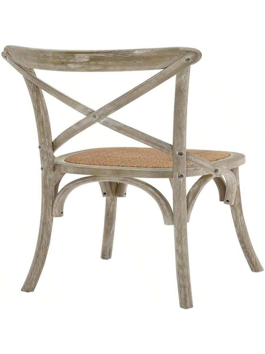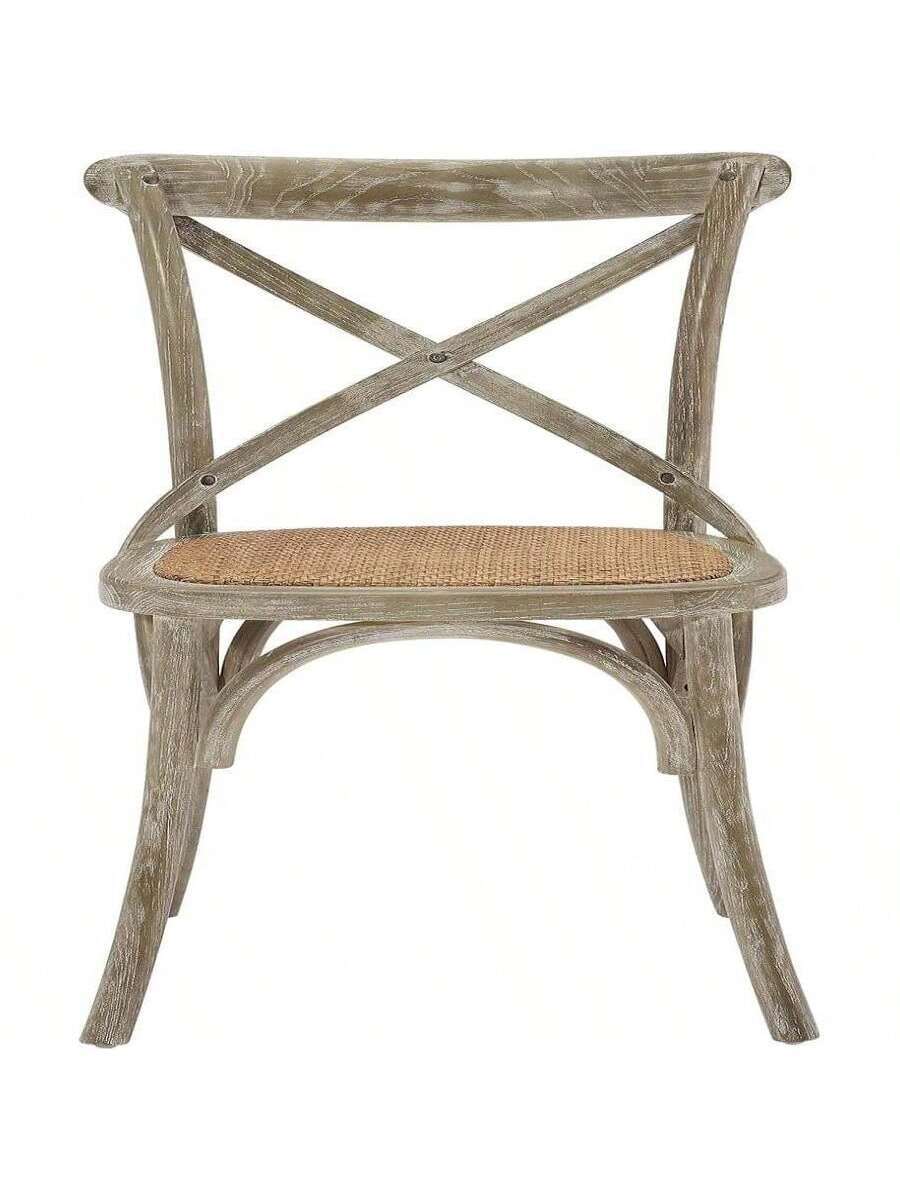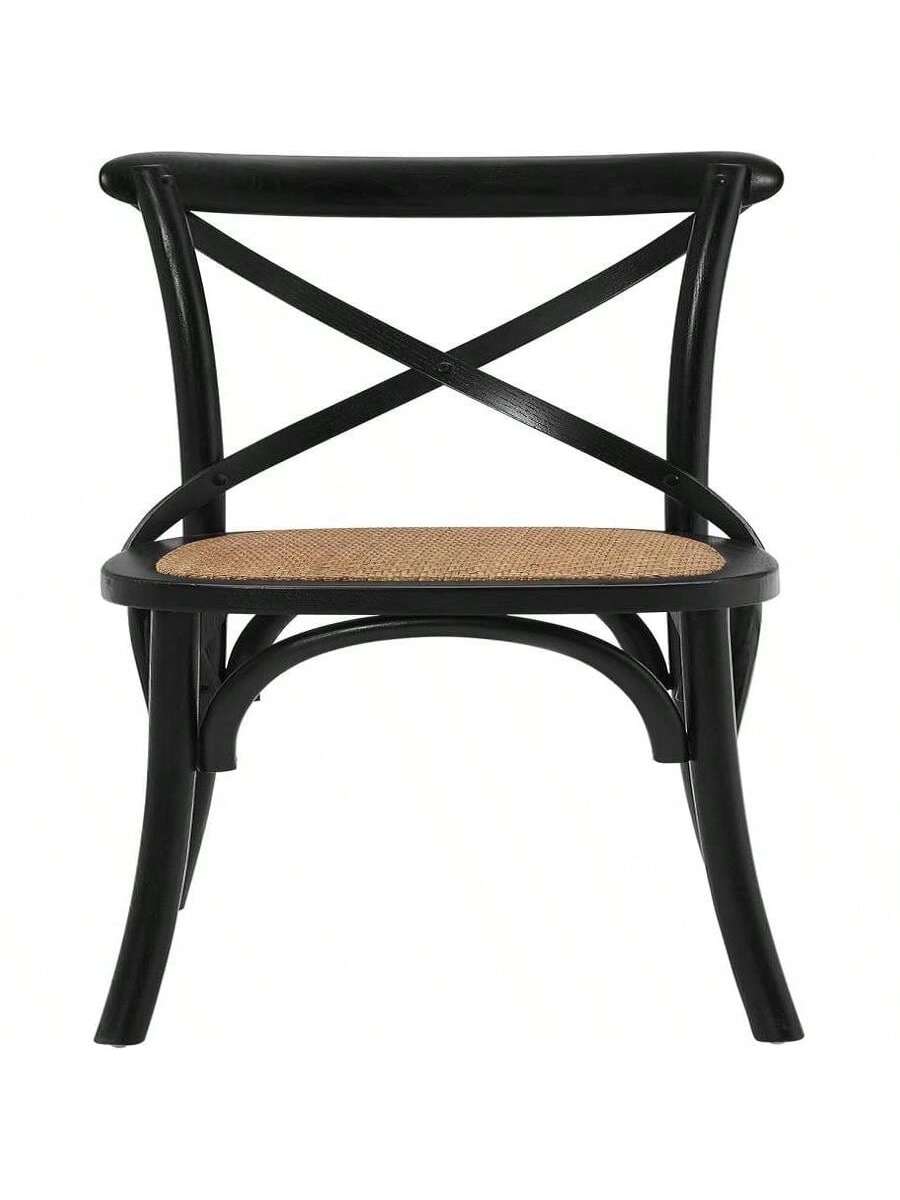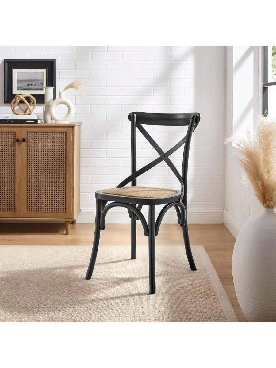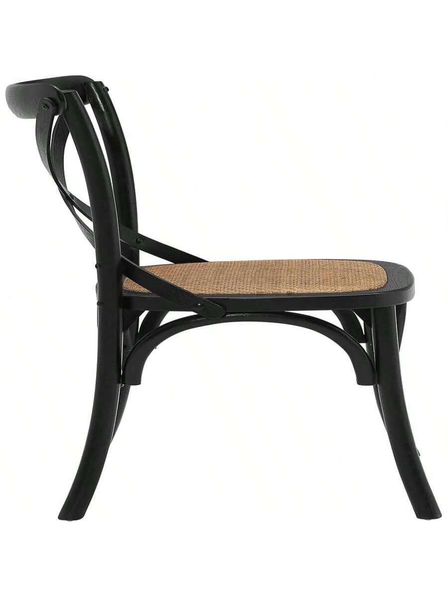 Modway Gear Rustic Modern Farmhouse Elm Wood Rattan Dining Chair In Black