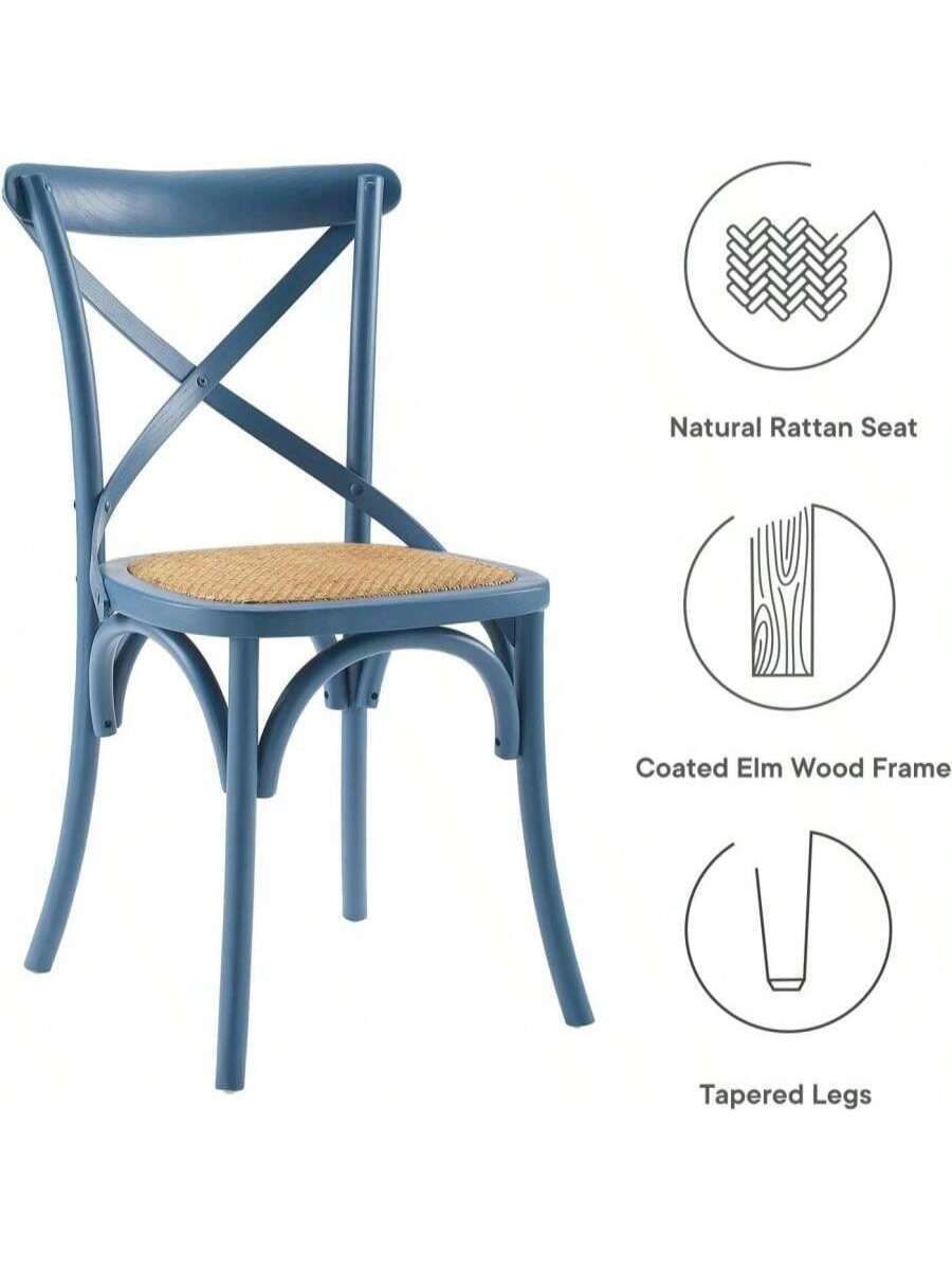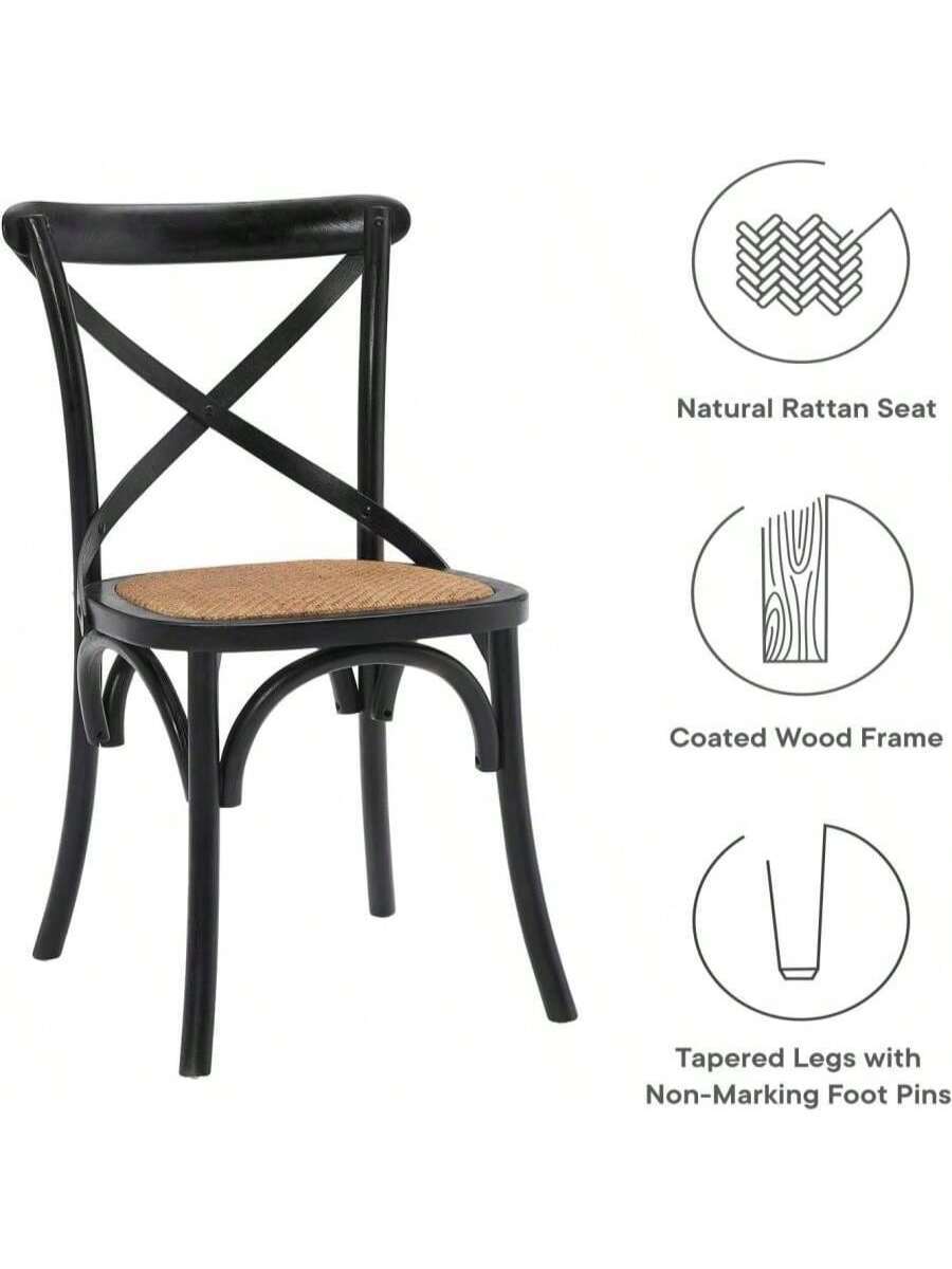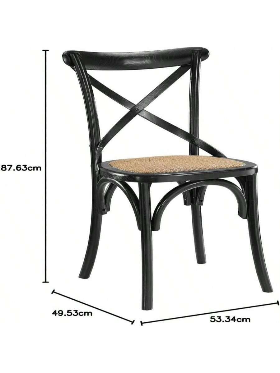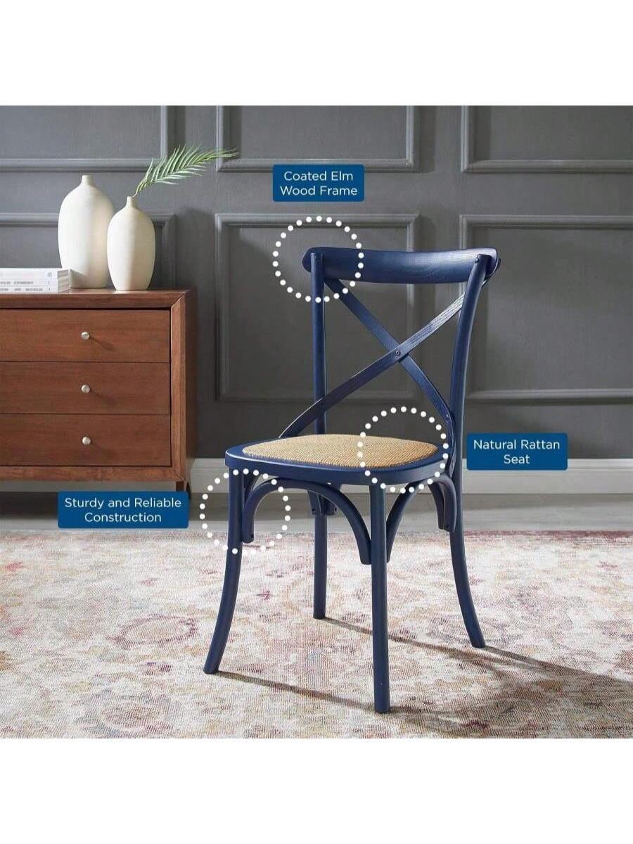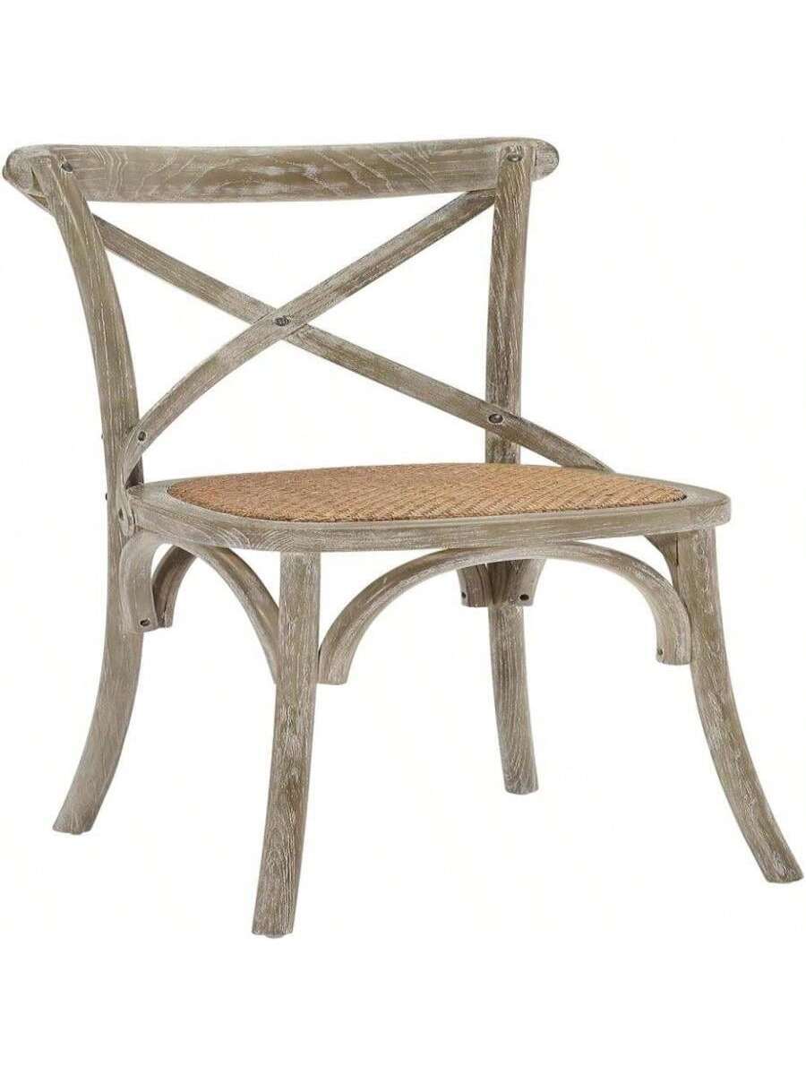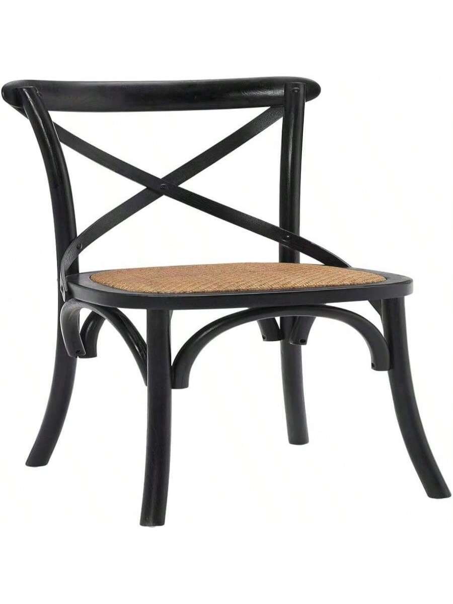 Modway Gear Rustic Modern Farmhouse Elm Wood Rattan Dining Chair In Black