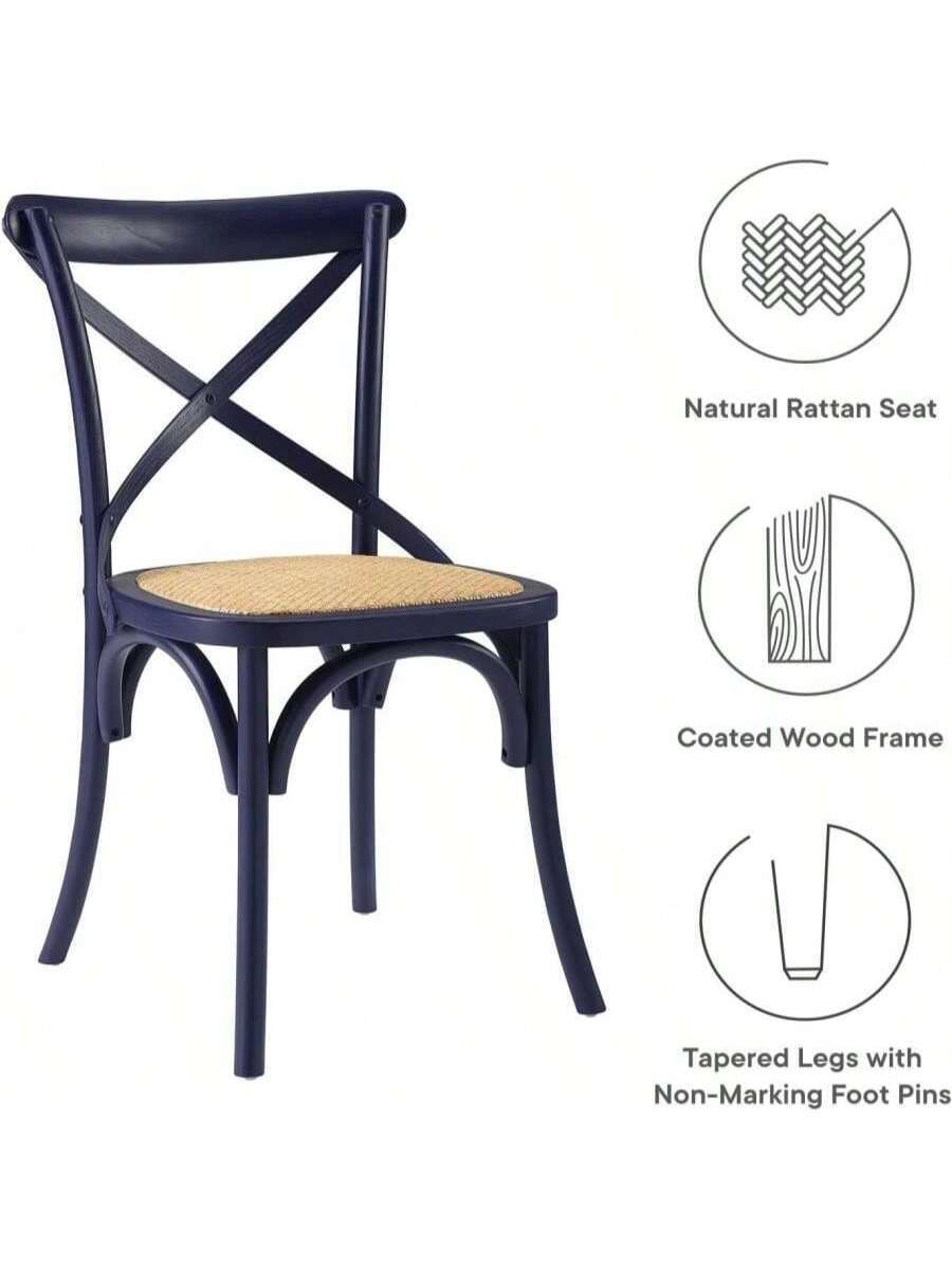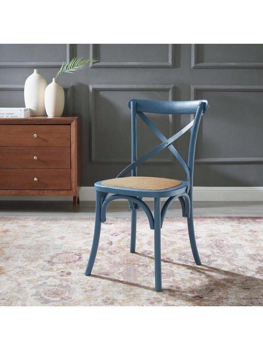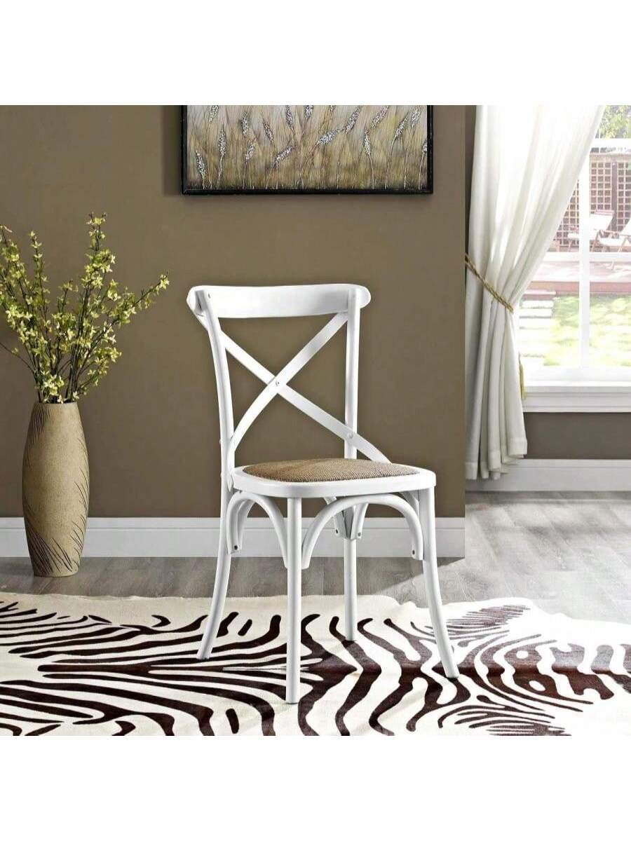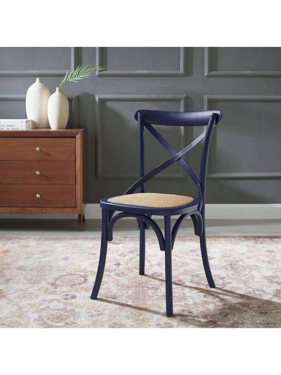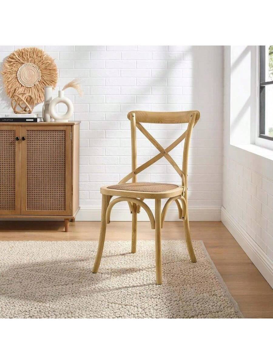 Modway Gear Rustic Modern Farmhouse Elm Wood Rattan Dining Chair In Black