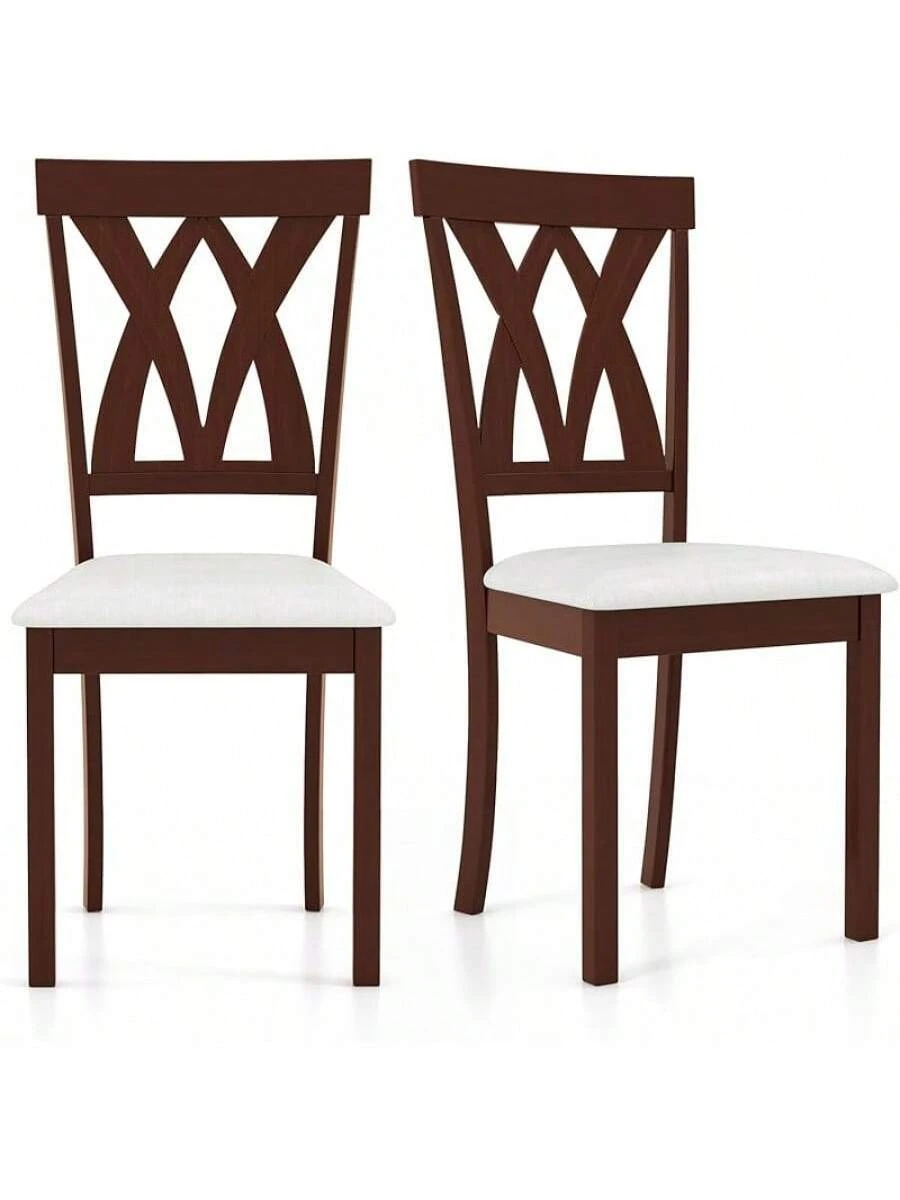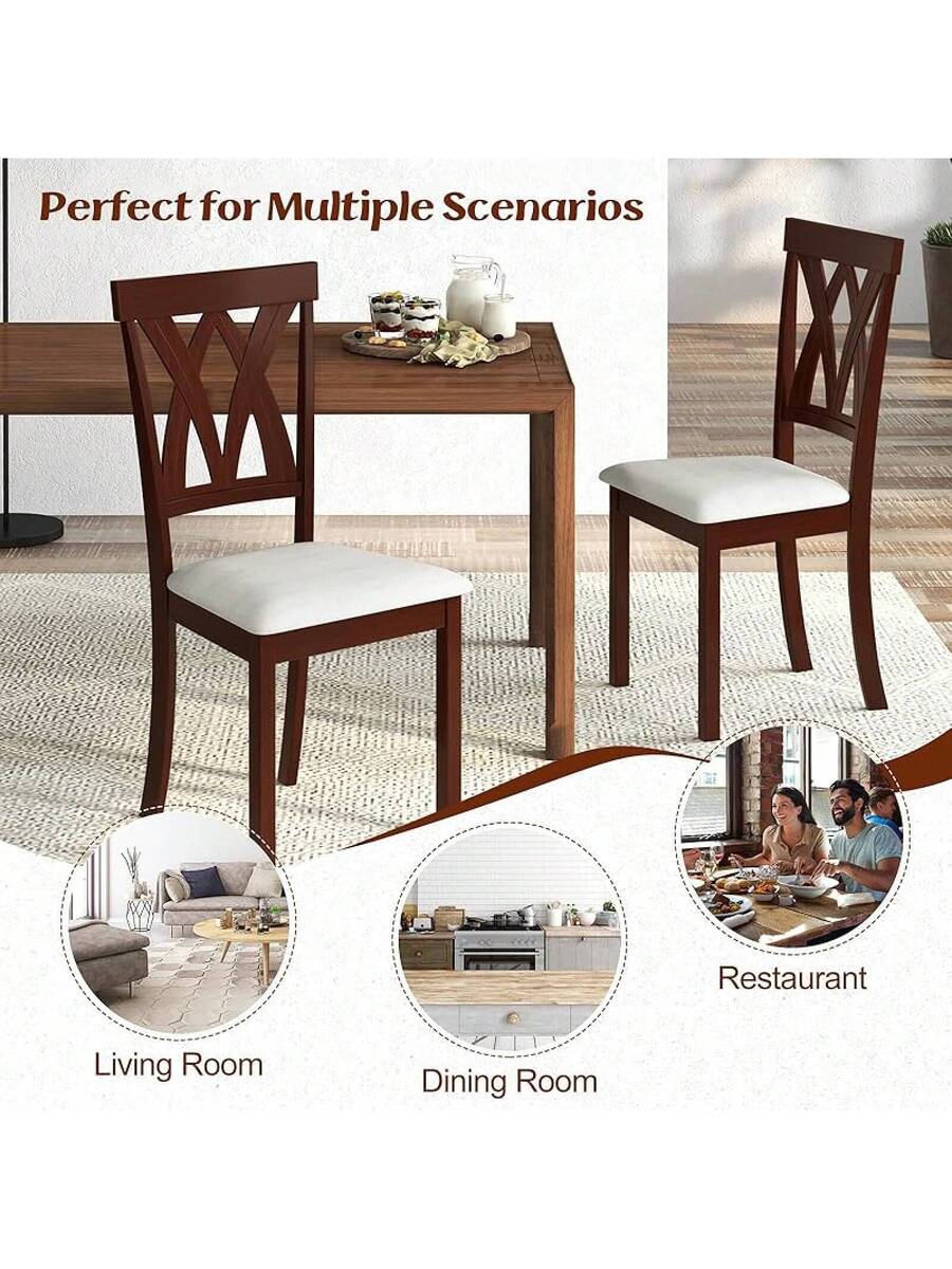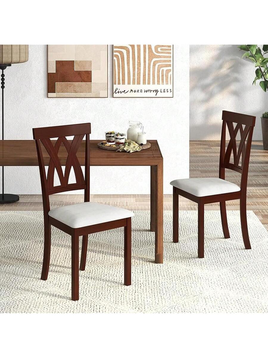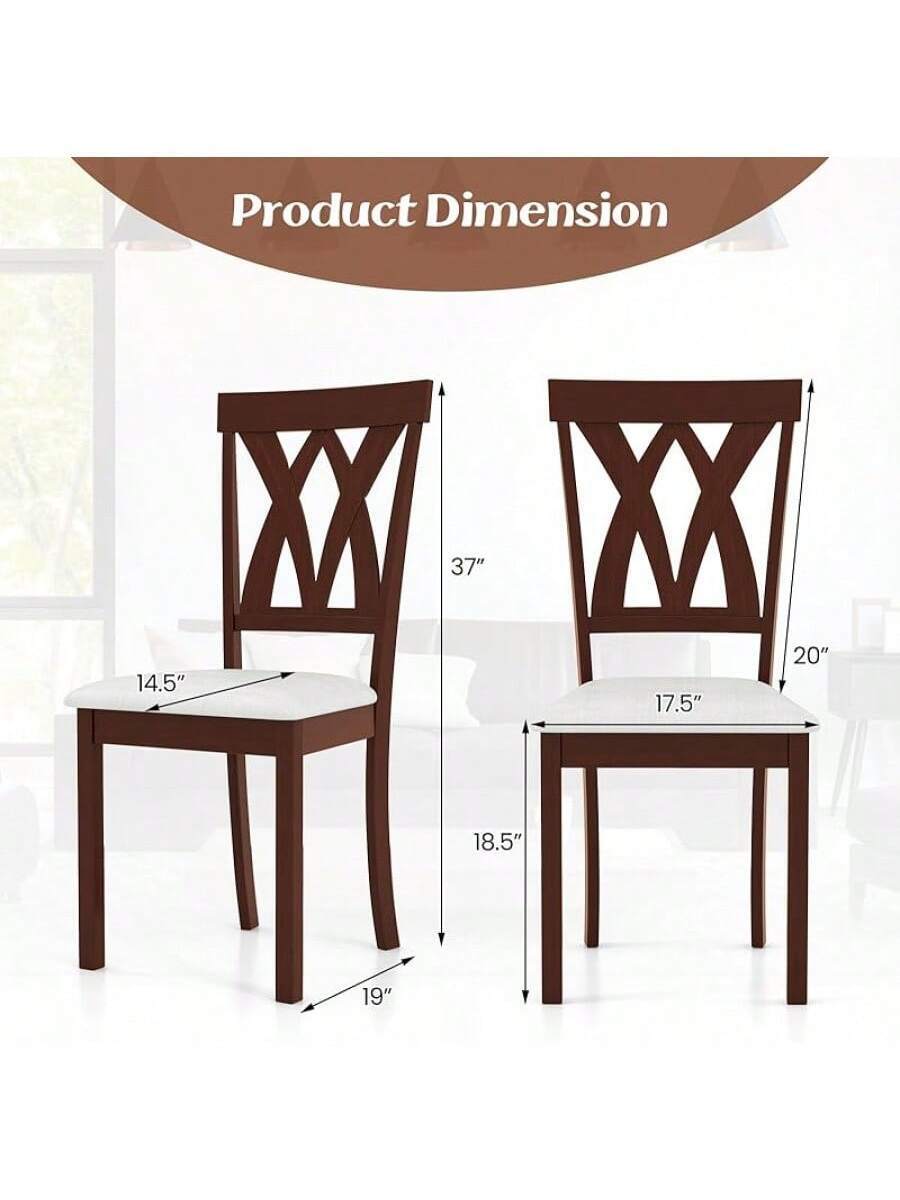 2-Pack Wooden Dining Chair Set, Wooden Kitchen Chairs With Cushioned Seats, Rubber Wood And Backrest, Suitable Restaurant, Farmhouse Style Armless Dining Chairs, Oak Material