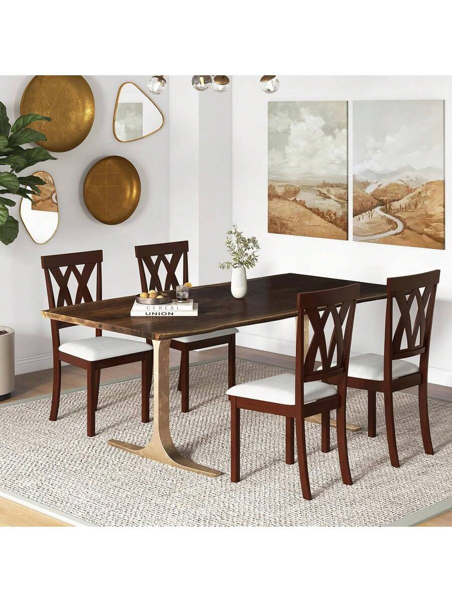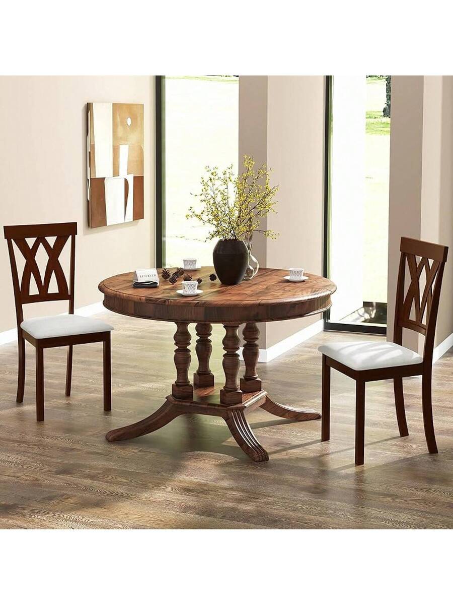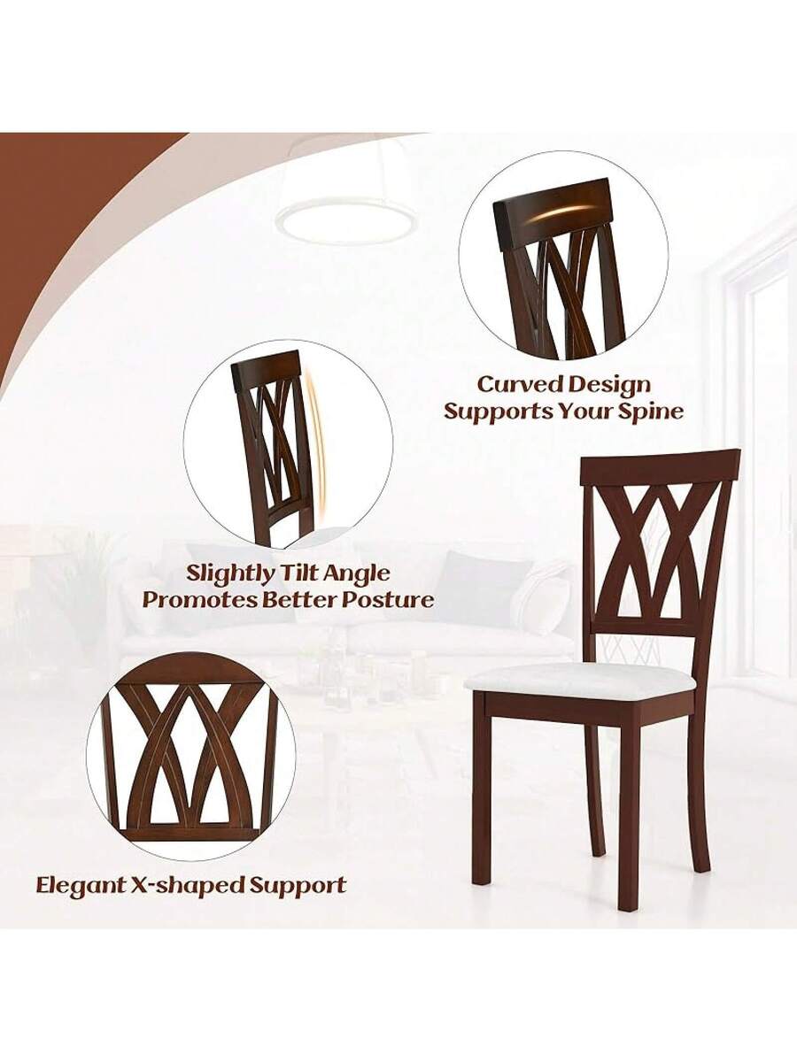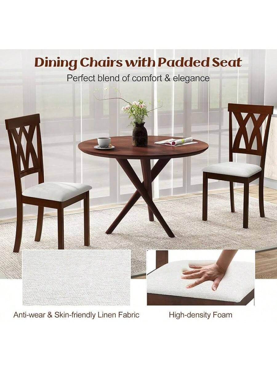 2-Pack Wooden Dining Chair Set, Wooden Kitchen Chairs With Cushioned Seats, Rubber Wood And Backrest, Suitable Restaurant, Farmhouse Style Armless Dining Chairs, Oak Material