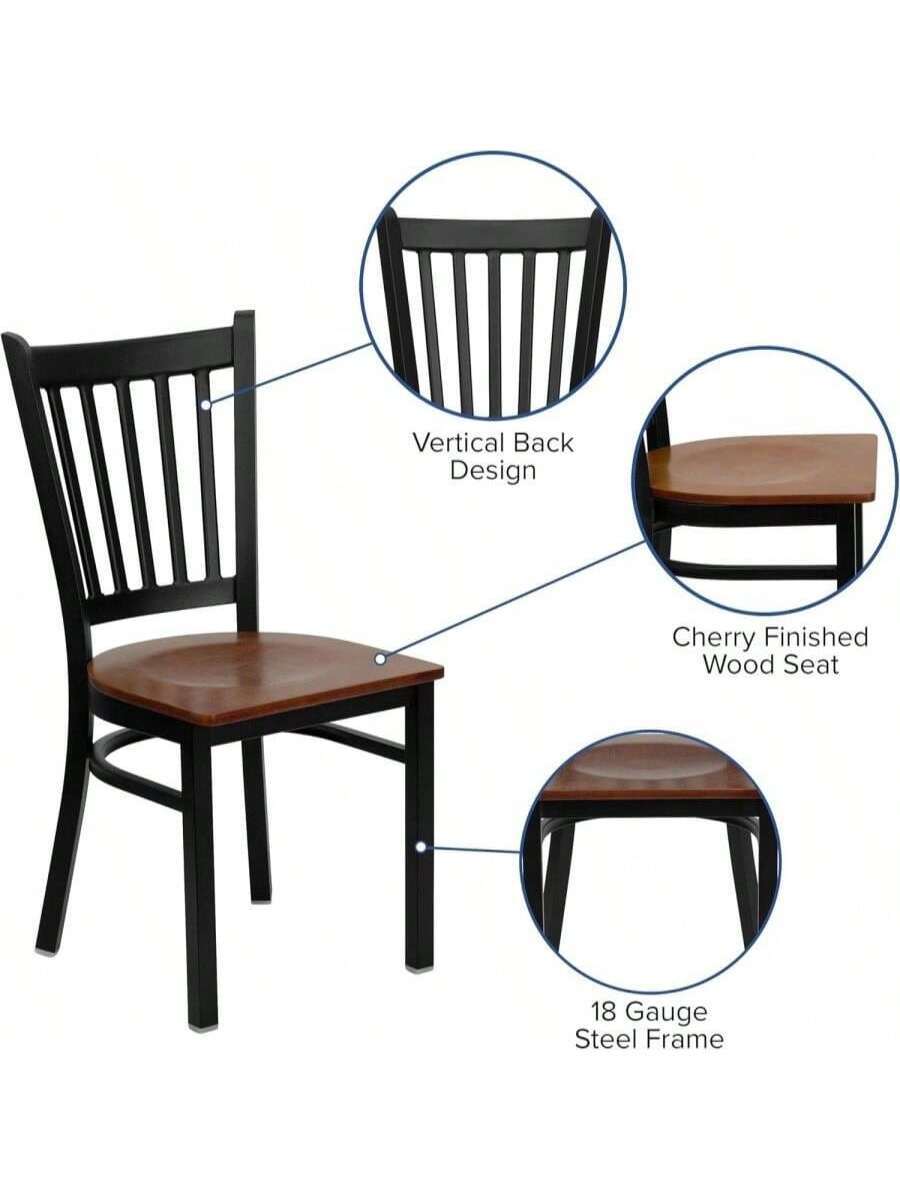 Flash Furniture Hercules Series Vertical Back Metal Restaurant Chairs, Upholstered Armless Dining Chairs For Restaurants_Kitchens, Set Of 2, Black
