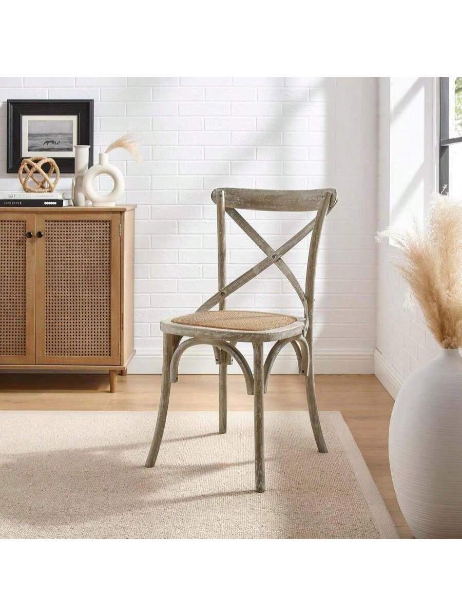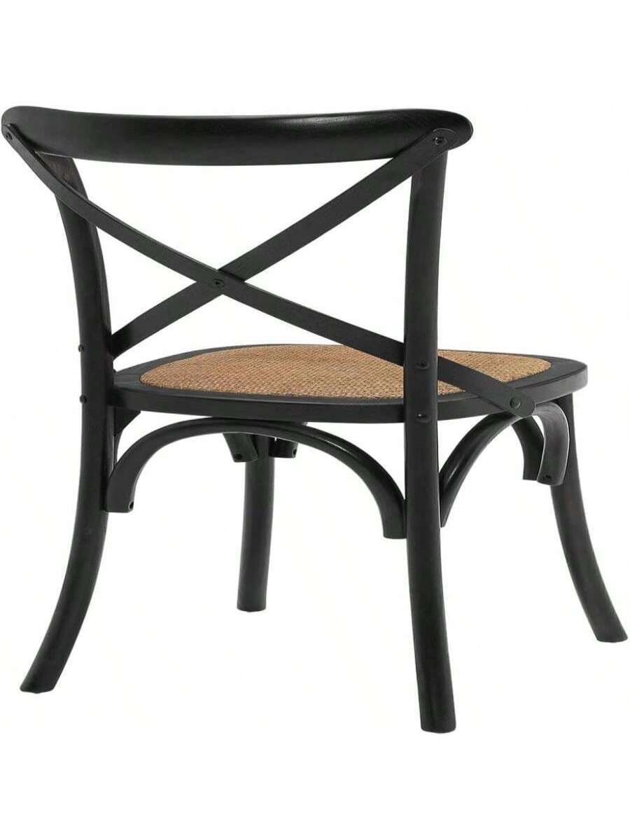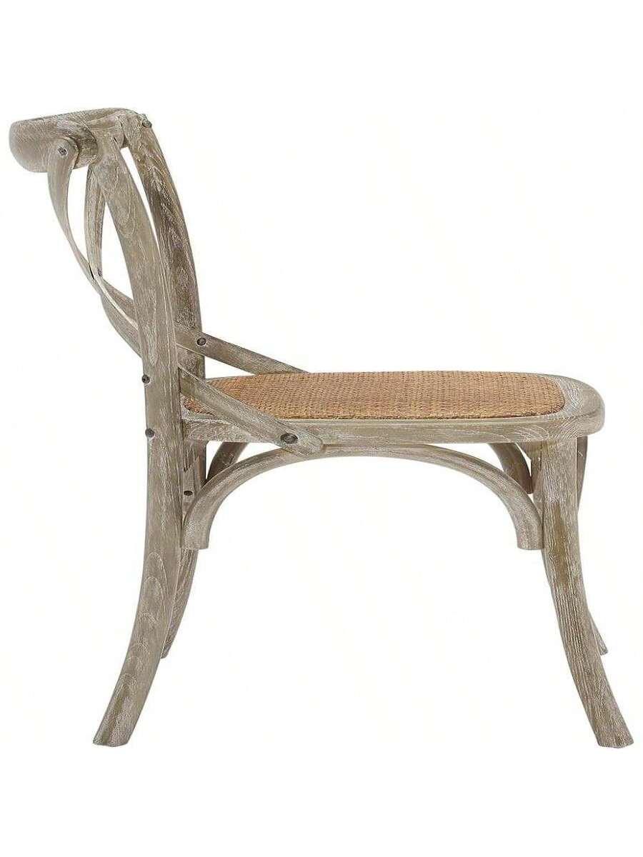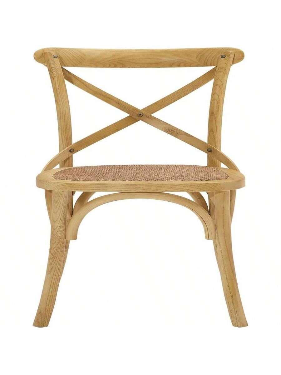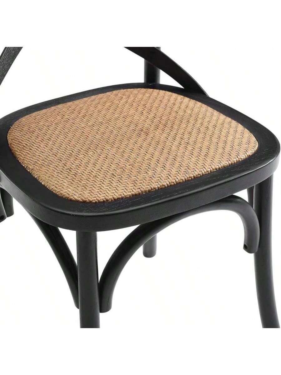 Modway Gear Rustic Modern Farmhouse Elm Wood Rattan Dining Chair In Black