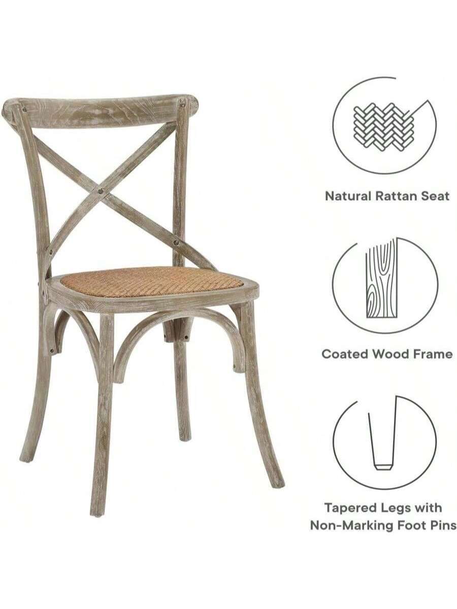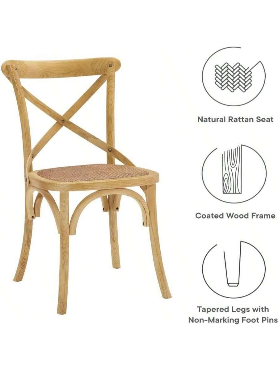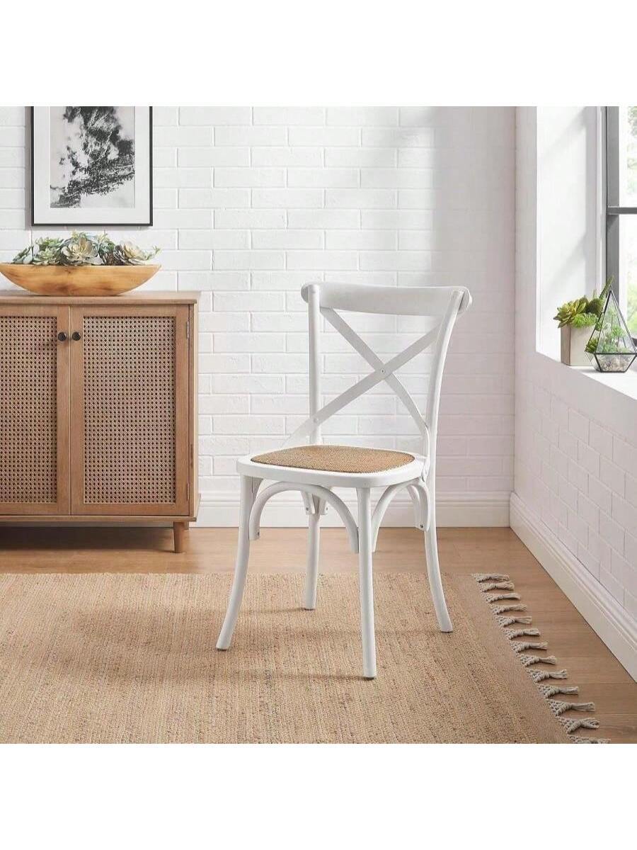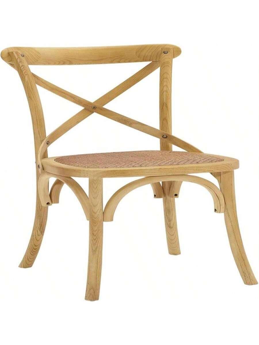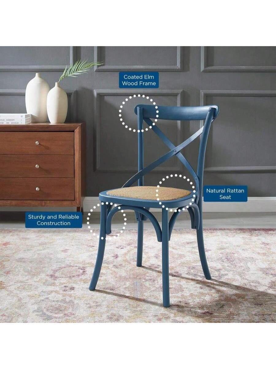 Modway Gear Rustic Modern Farmhouse Elm Wood Rattan Dining Chair In Black