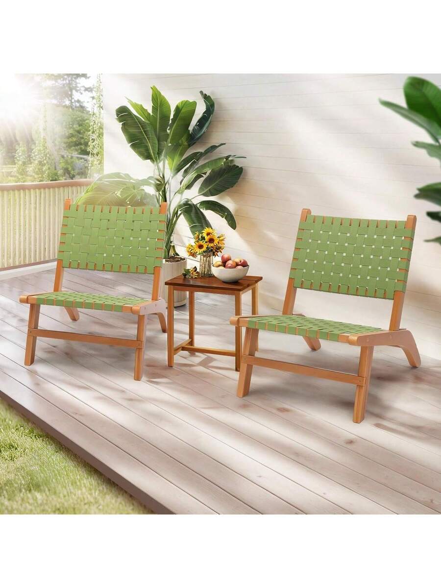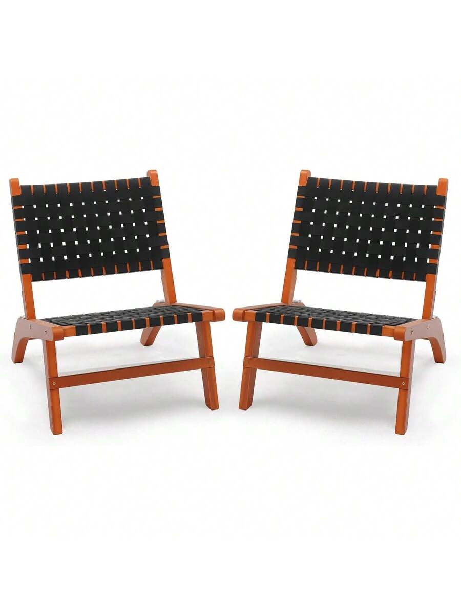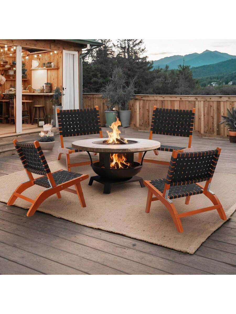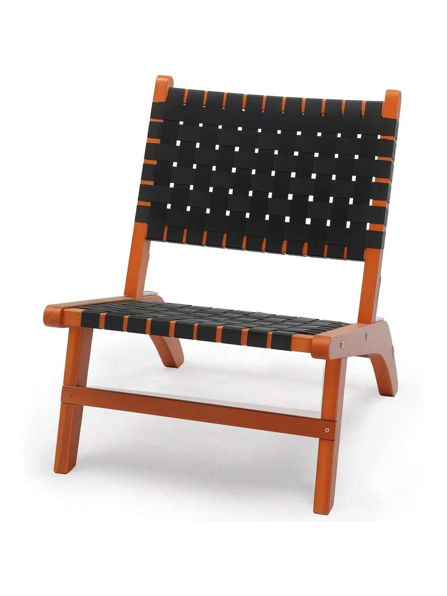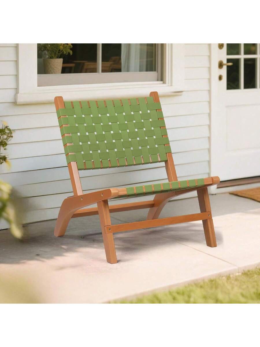 Wooden Outdoor Chair, All-Weather Patio Seat With PE Woven Fabric, Adirondack Chair For Lawn, Balcony, Deck.