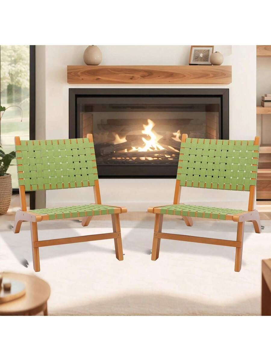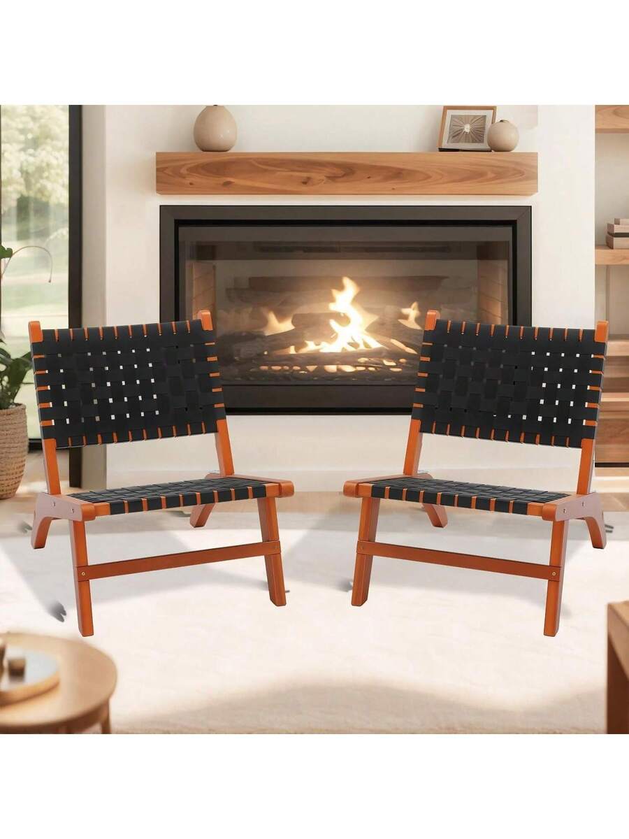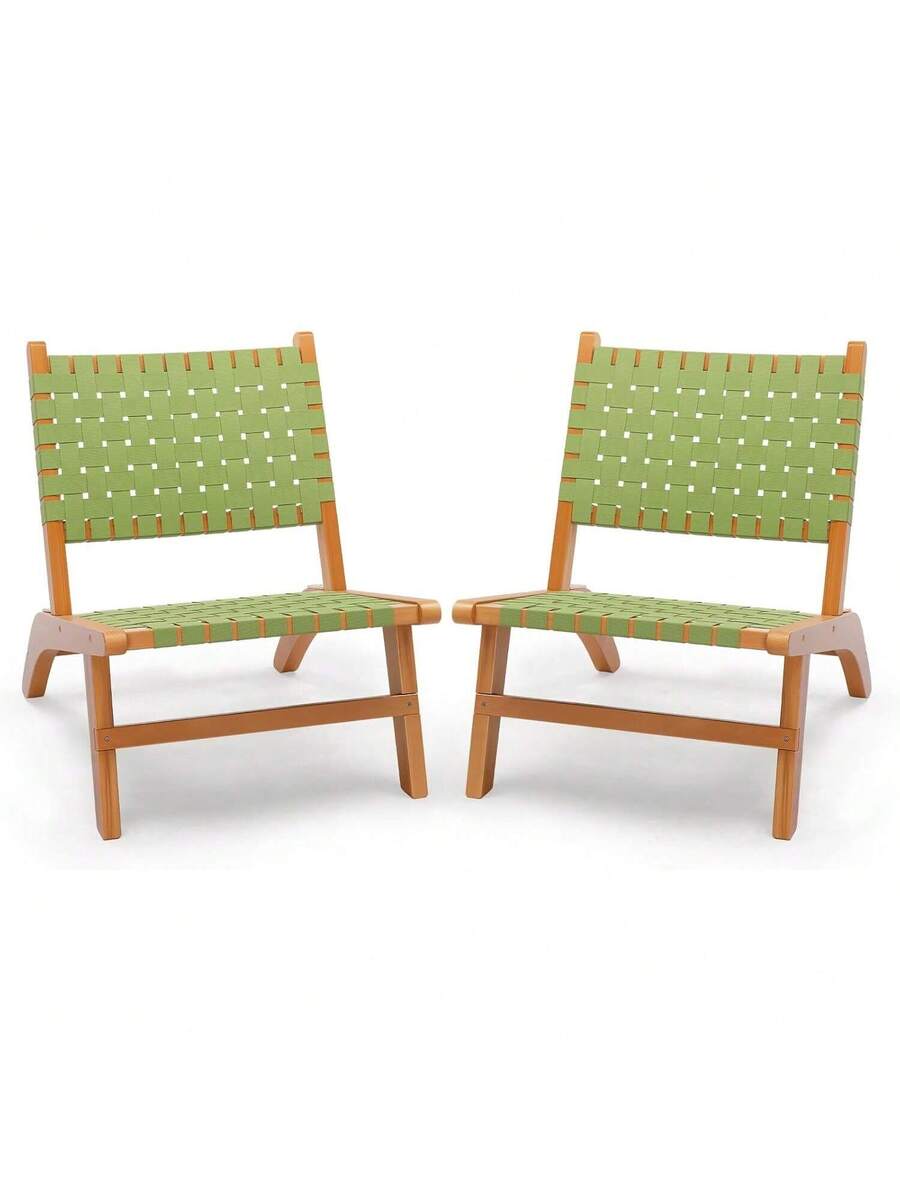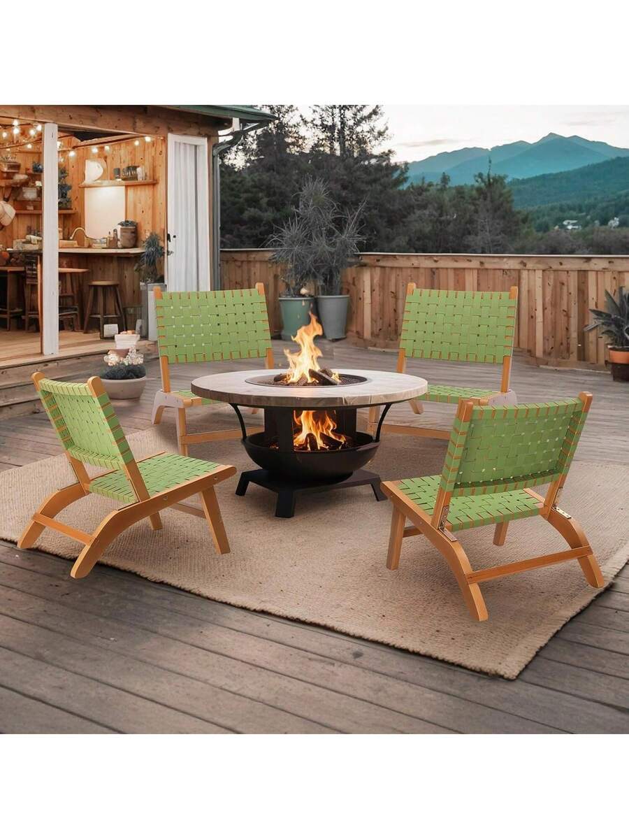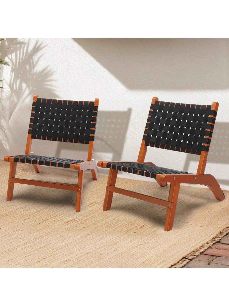 Wooden Outdoor Chair, All-Weather Patio Seat With PE Woven Fabric, Adirondack Chair For Lawn, Balcony, Deck.